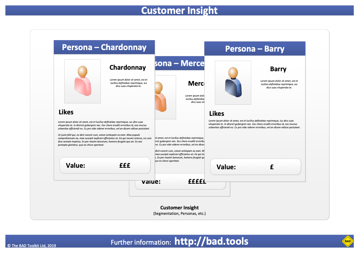 We also have some customer segmentation to show which customers are most valuable to us and marketing have previously worked with a external consultancy to identify what “typical” customers from each customer group would look like. This is only used to help with our brand marketing campaigns and is not utilised elsewhere in the organisation.