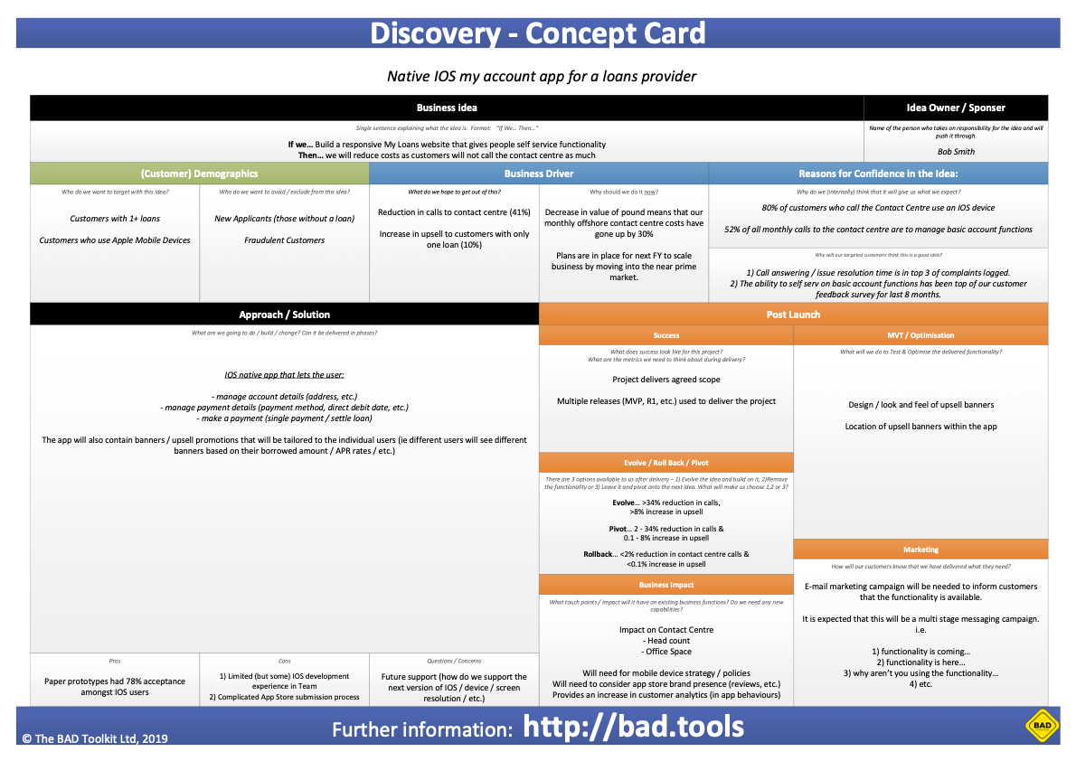 This let us created a revised Cost and Benefit estimation that we could use to generate a “Go” or “No Go” decision ahead of the next stage of the process – Inception.