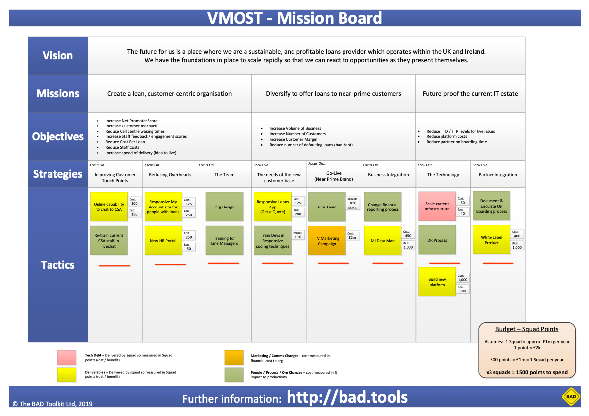 Whilst we focused on creating a VMOST Mission Board for the whole organisation - at The BAD Loans Company, we have also implemented child boards for various departments. This lets the teams structure their investment at a lower level, whilst aligning to organisational level Strategy.